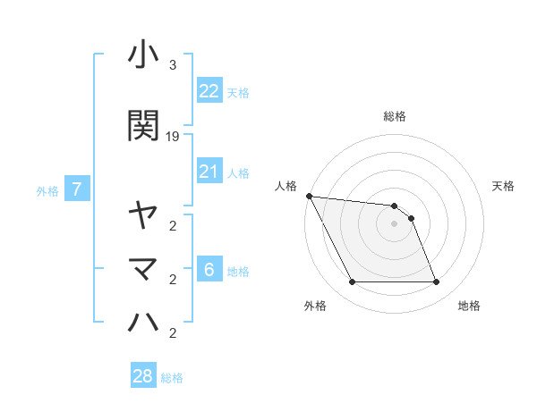 小関 ヤマハさんの総格は28画の1点!