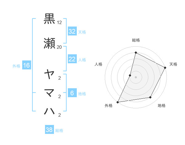 黒瀬 ヤマハさんの総格は38画の4点!