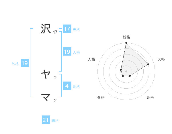 沢 ヤマさんの天格は17画の4点!