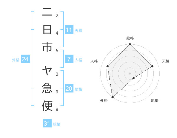二日市 ヤ急便さんを姓名の画数から五運を鑑定