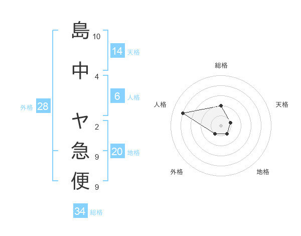 島中 ヤ急便さんの総格は34画の2点!