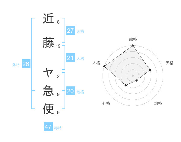 近藤 ヤ急便さんの総格は47画の5点