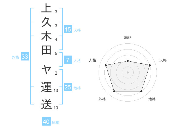 上久木田 ヤ運送さんの人格は7画の4点