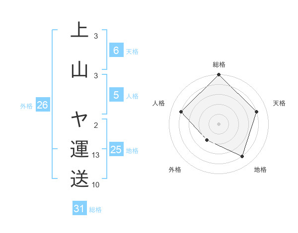 上山 ヤ運送さんの総格は31画の5点!