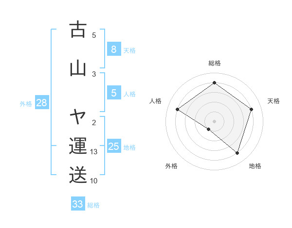 古山 ヤ運送さんを姓名の画数から五運を鑑定