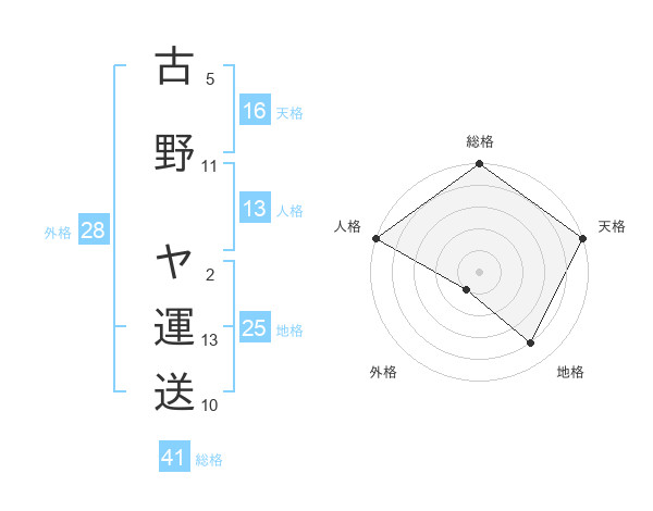 古野 ヤ運送さんを姓名の画数から五運を鑑定