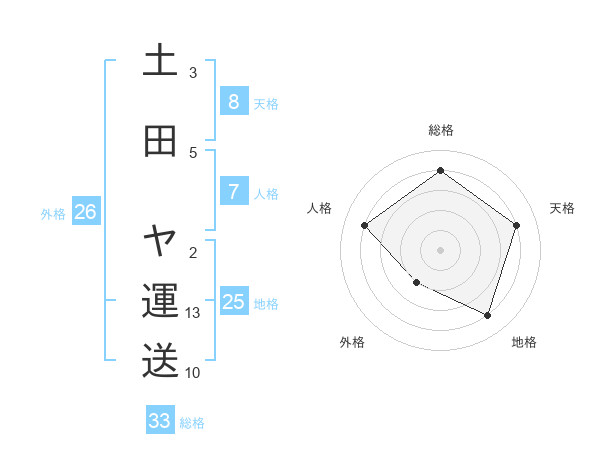 土田 ヤ運送さんを姓名の画数から五運を鑑定