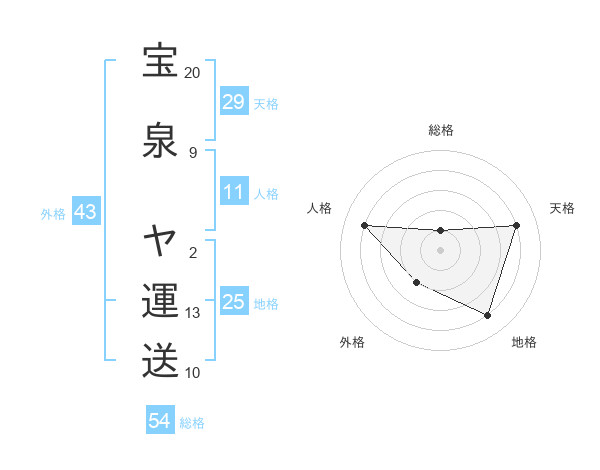 宝泉 ヤ運送さんの総格は54画の1点!