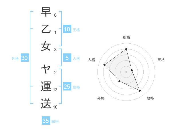 早乙女 ヤ運送さんの総格は35画の4点