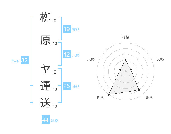 栁原 ヤ運送さんの総格は44画の2点!