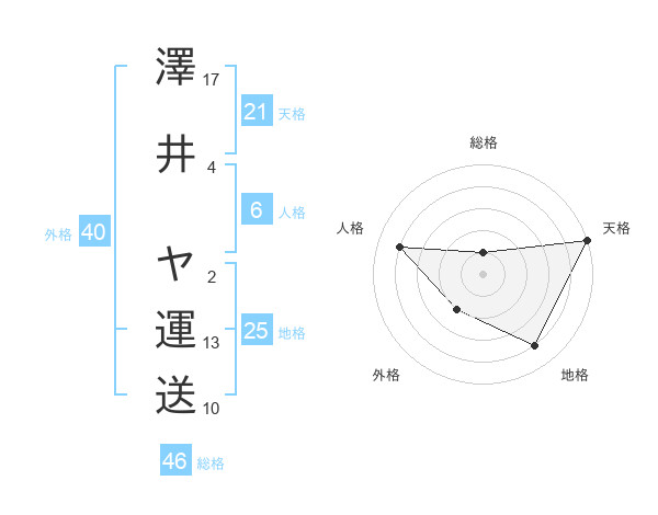 澤井 ヤ運送さんを姓名の画数から五運を鑑定