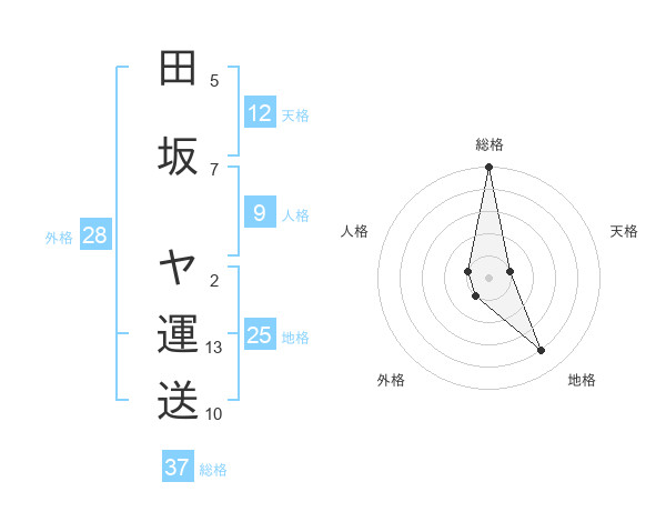 田坂 ヤ運送さんの総格は37画の5点!
