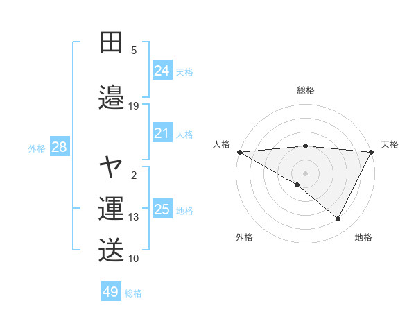 田邉 ヤ運送さんを姓名の画数から五運を鑑定