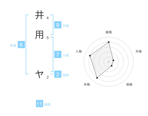 井用 ヤさんの総格は11画の4点!