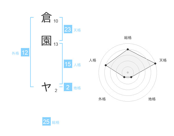 倉園 ヤさんの総格は25画の4点!