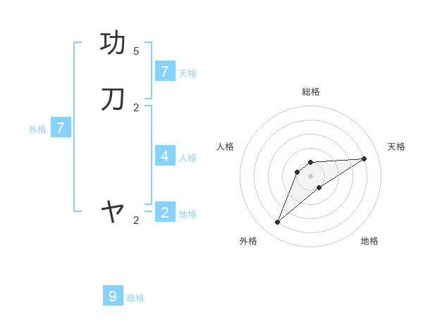 功刀 ヤさんの天格は7画の4点!
