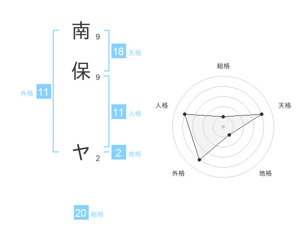 南保 ヤさんの総格は20画の1点!