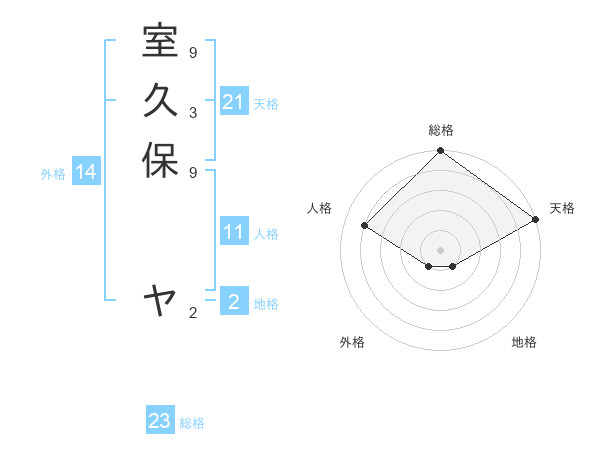 室久保 ヤさんを姓名の画数から五運を鑑定