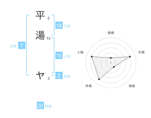 平湯 ヤさんを姓名の画数から五運を鑑定