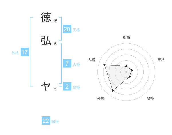 徳弘 ヤさんを姓名の画数から五運を鑑定
