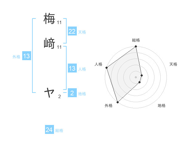 梅﨑 ヤさんの外格は13画の5点!