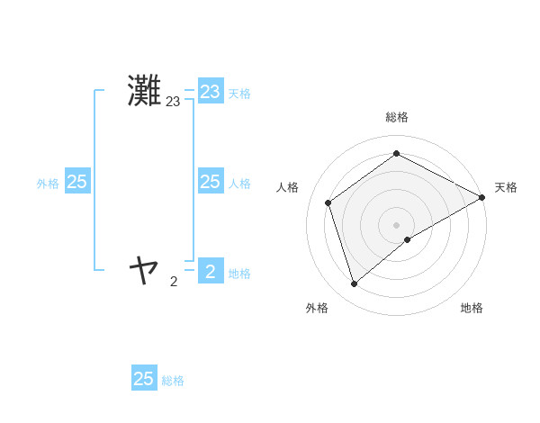 灘 ヤさんの天格は23画の5点!