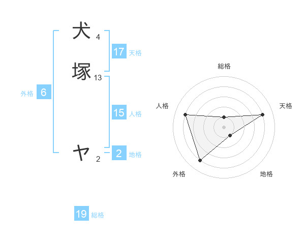 犬塚 ヤさんの天格は17画の4点!