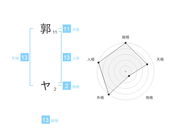 郭 ヤさんの総格は13画の5点!