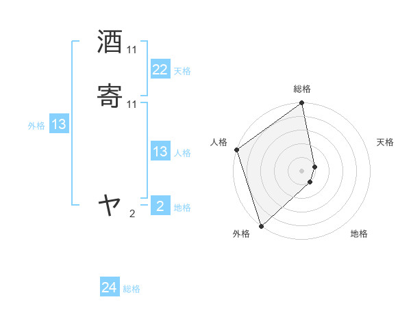 酒寄 ヤさんを姓名の画数から五運を鑑定