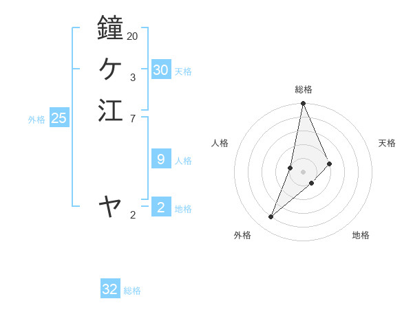 鐘ケ江 ヤさんを姓名の画数から五運を鑑定