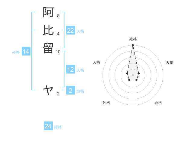 阿比留 ヤさんを姓名の画数から五運を鑑定