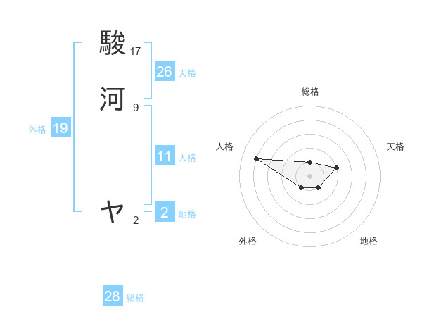 駿河 ヤさんを姓名の画数から五運を鑑定