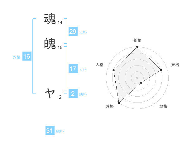 魂魄 ヤさんの総格は31画の5点!