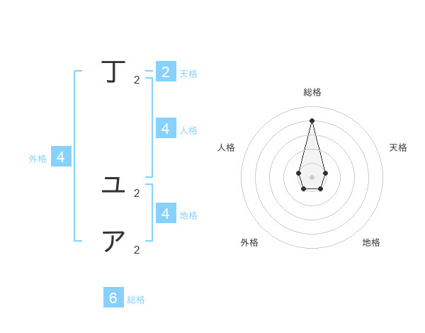 丁 ユアさんの総格は6画の4点!