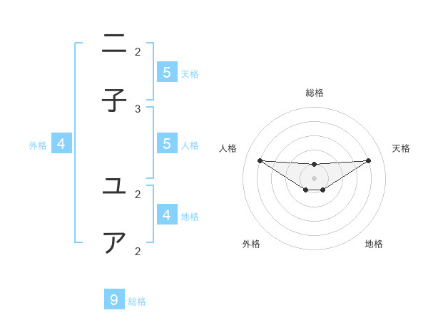 二子 ユアさんの天格は5画の4点!