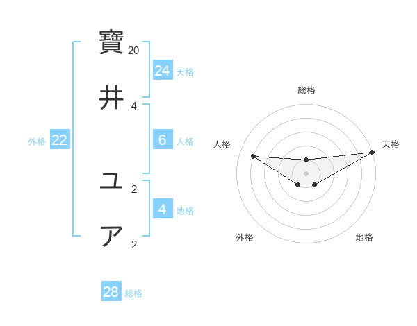 寶井 ユアさんの外格は22画の1点