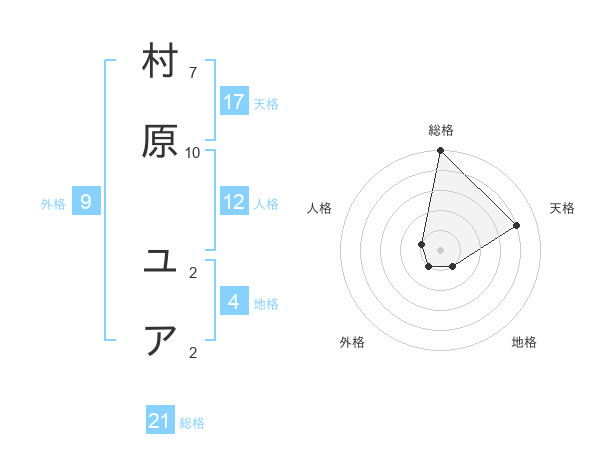 村原 ユアさんの天格は17画の4点!