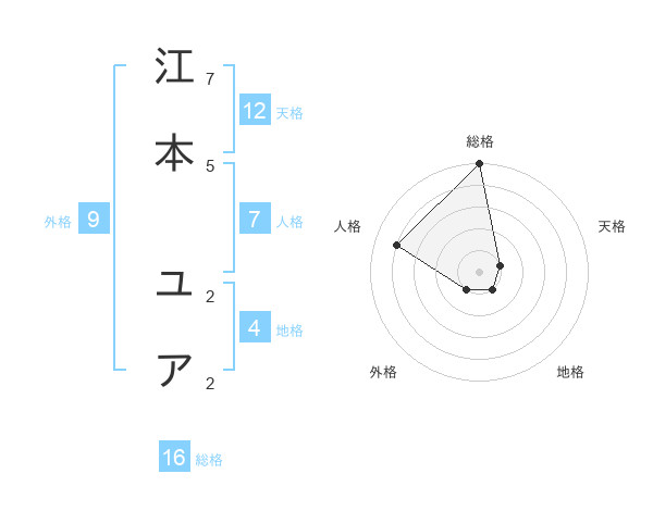 江本 ユアさんの総格は16画の5点!