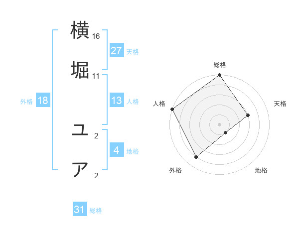 横堀 ユアさんを姓名の画数から五運を鑑定