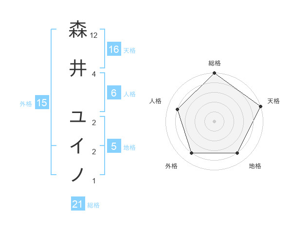 森井 ユイノさんの総格は21画の5点!