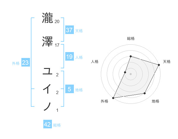 瀧澤 ユイノさんの天格は37画の5点!