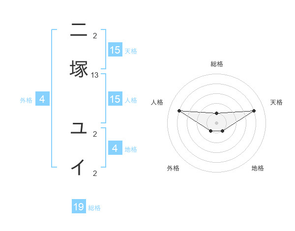 二塚 ユイさんを姓名の画数から五運を鑑定