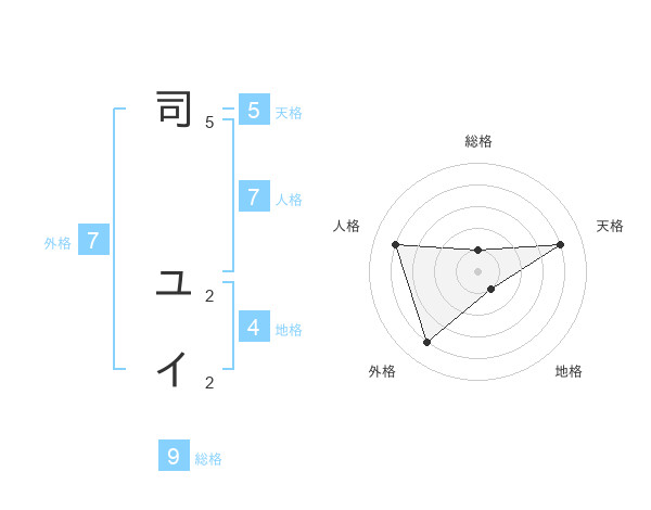 司 ユイさんの天格は5画の4点!