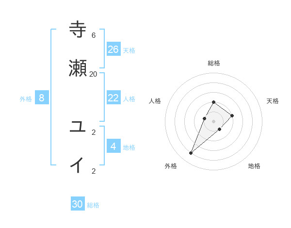 寺瀬 ユイさんの天格は26画の2点!