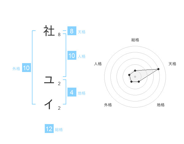 社 ユイさんの総格は12画の1点!