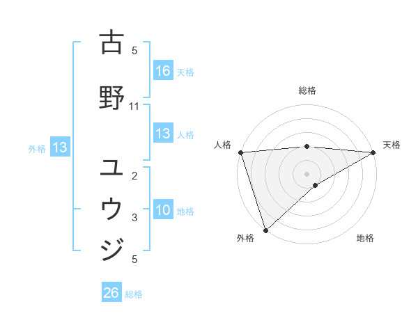 古野 ユウジさんを姓名の画数から五運を鑑定