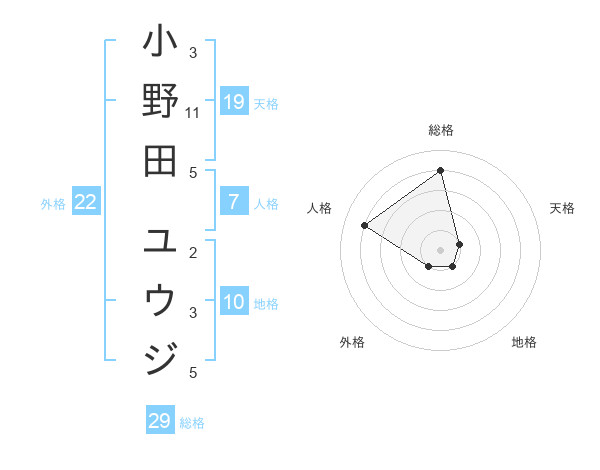 小野田 ユウジさんを姓名の画数から五運を鑑定
