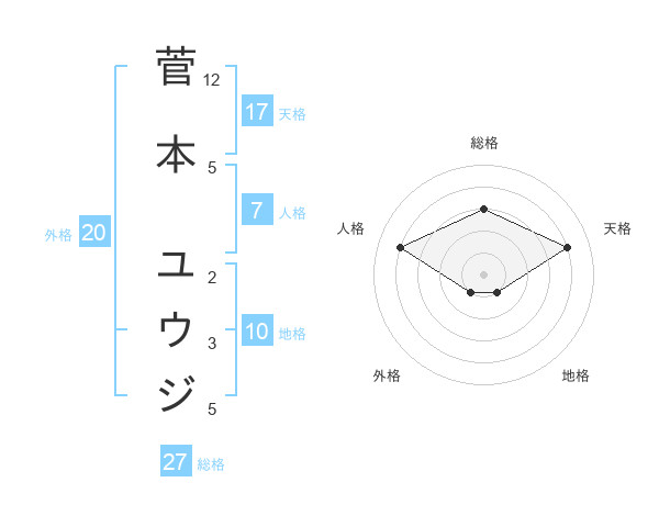 菅本 ユウジさんを姓名の画数から五運を鑑定