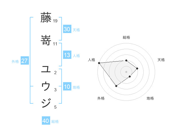 藤嵜 ユウジさんを姓名の画数から五運を鑑定