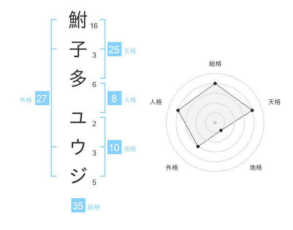 鮒子多 ユウジさんの外格は27画の3点!